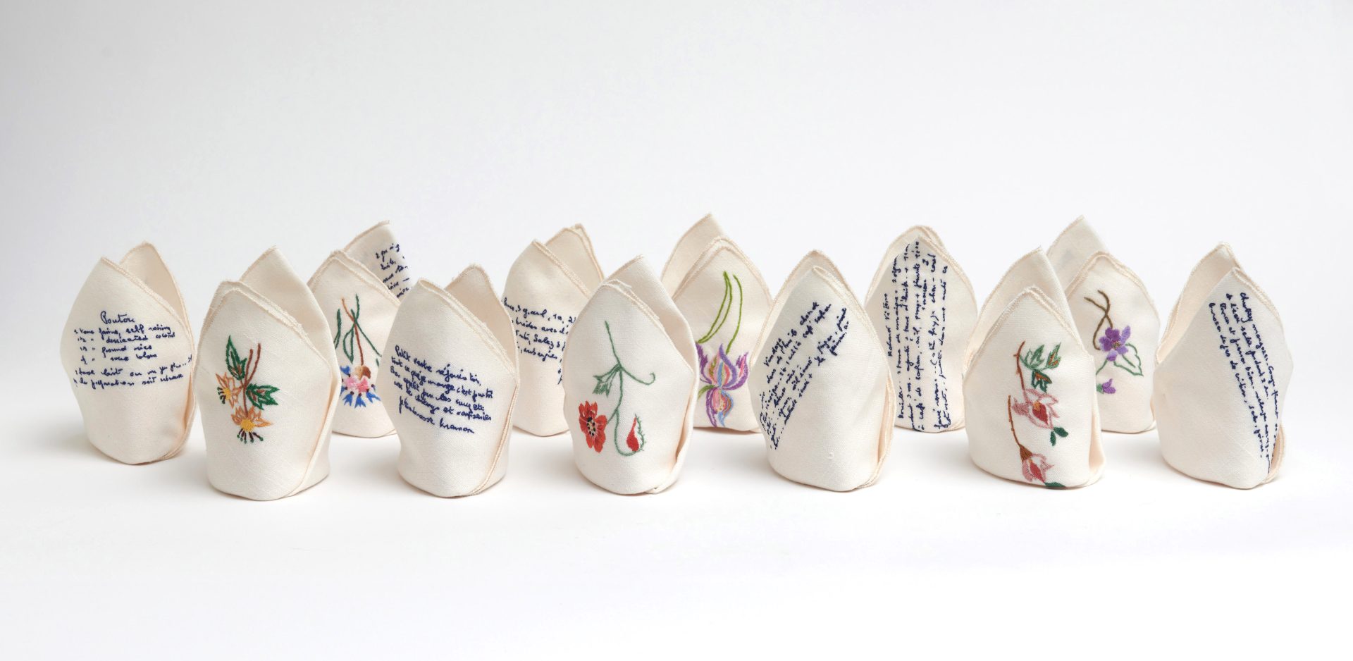 Image credit: Bernard Appassamy, The Twelve Napkins, 2024, linen and cotton, 15 x 80 x 35 cm. Courtesy and copyright the Artist.